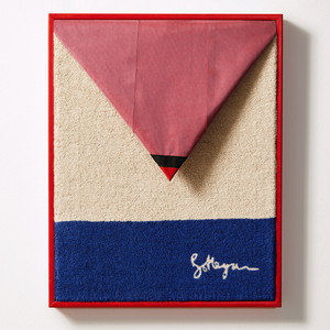 Muynck's submission refers to the artworks as 'Naked Philosophers.' The pieces are primarily designed using cut-up garments and pieces of cloth immersed in a composition that exposes intimate and human characteristics, creating an anthropomorphic play. Garments are used as their medium and are bent into an image on a canvas, taking an exterior and cracking it open to reveal the insides. Delving into the profound intimacy of the human body, this work captures close-up, fragmented, isolated, and abstracted images that challenge conventional perceptions. What might initially be interpreted as pornographic transforms into a depiction of a sacred landscape. This approach invites viewers to reconsider the inherent beauty and sanctity of our physical forms, highlighting not only the details of our bodies but also the intertwining nature of sexuality. In response to the hyper-sexualized perceptions of our bodies and identities, this work emphasizes the delicate nature of our outward appearances. Myrza thoughtfully engages with 'ready-made' garments that hold significant personal meaning, often pieces she has cherished and worn for many years. The memories and experiences embedded in these garments, along with their unique wear and tear, contribute to a deeper narrative about identity and individuality. Baron would like to thank this year’s judges Benjamin Fredrickson, Pinar Yolaçan and Gab Bois.